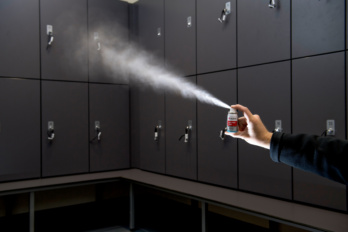 Empty the canister by fully pressing down the spray head once in the centre of the room (takes approx. 2 seconds).